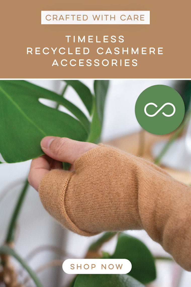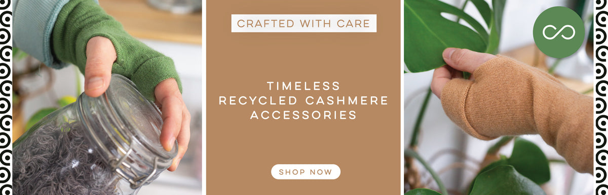 At Re:Born Cashmere, we don’t just recycle - we re:work and re:imagine. Our fingerless gloves and accessories are made from 100% recycled cashmere, giving preloved knitwear new life.