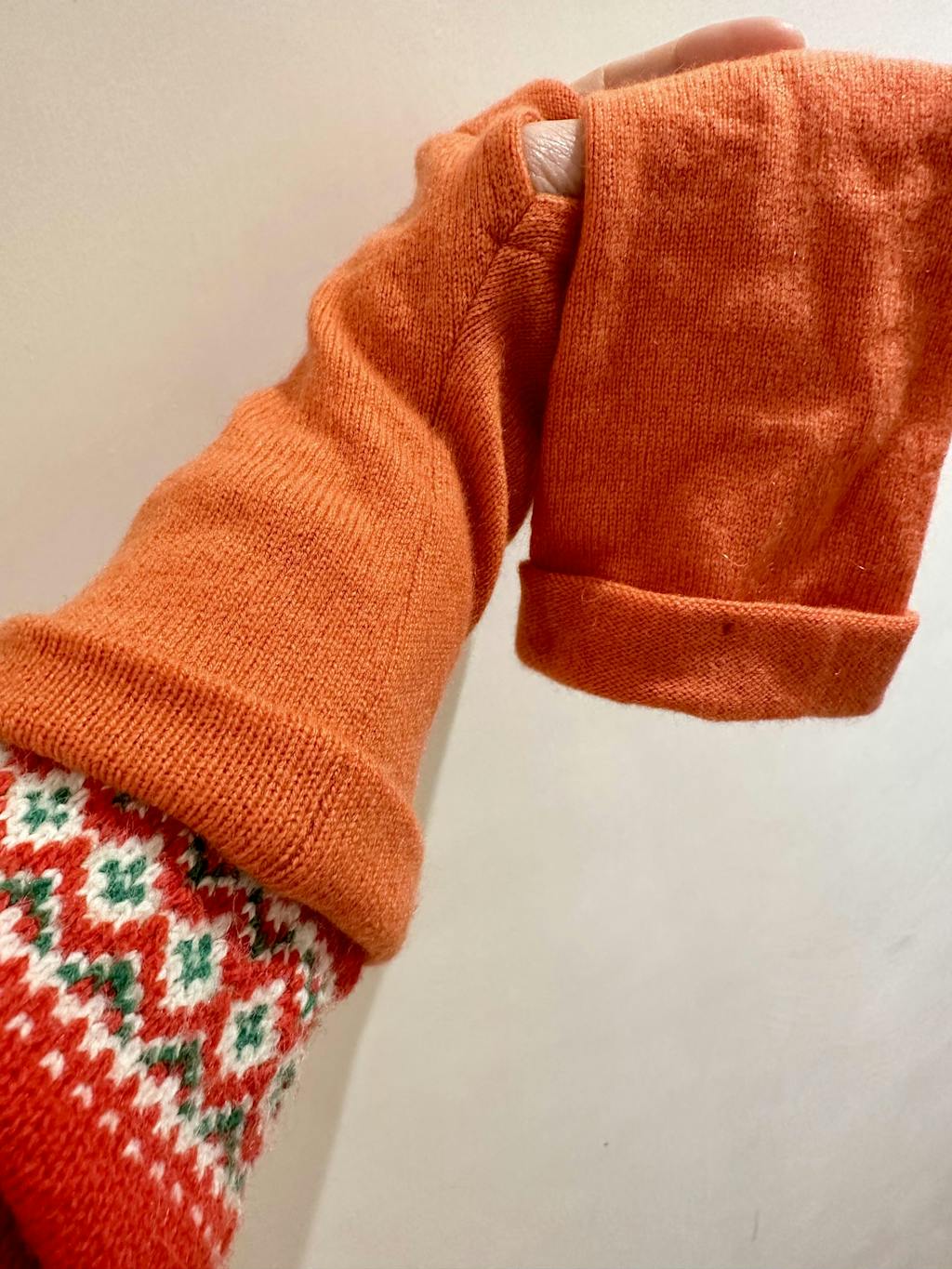 Each pair is carefully upcycled from cashmere jumpers. Due to the natural variation in the material, colours may vary—ensuring that every pair is as unique as it is sustainable. You may receive a pair that is a shade darker or lighter than pictured. Gloves may come with either a ribbed or cuffed finish, depending on availability.